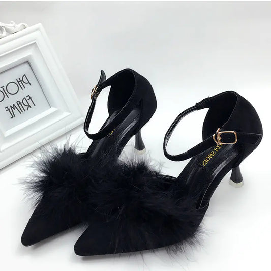 Women's Fall/Winter New Plush Shoes with Open Toe Heels